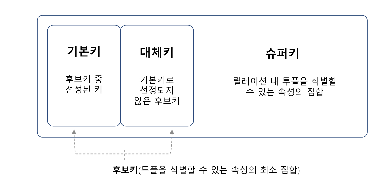슈퍼키 : 튜플을 고유하게 식별할 수있는 속성의 집합